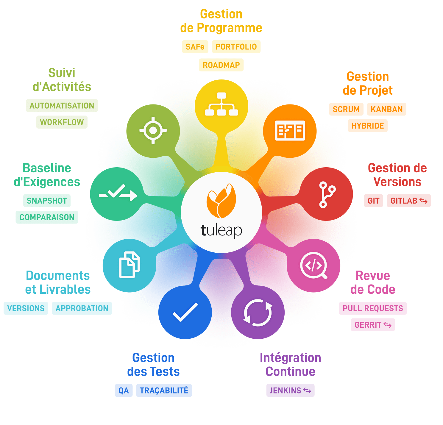 Tuleap is an all-in-one solution that provides you with 100% overall visibility on your products, down to the actual development of projects. The great advantage here, is that you have an integrated solution which is highly customizable depending on your activity and team process.