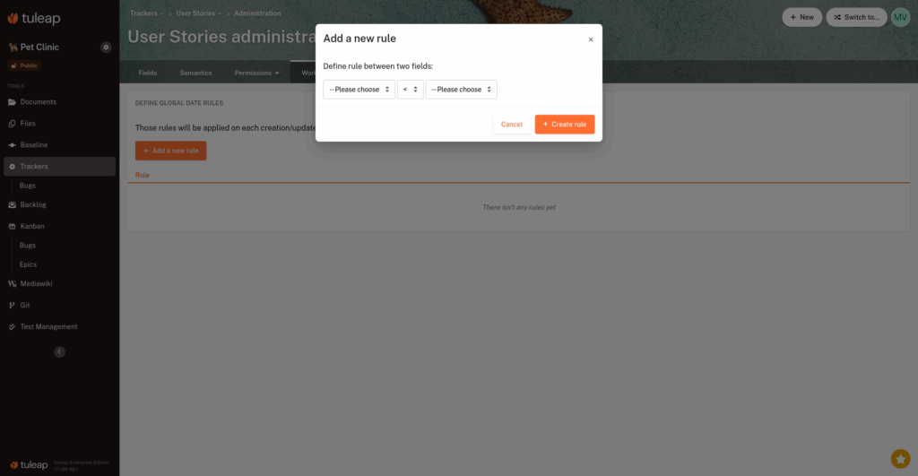 Tracker workflow: manage global rules