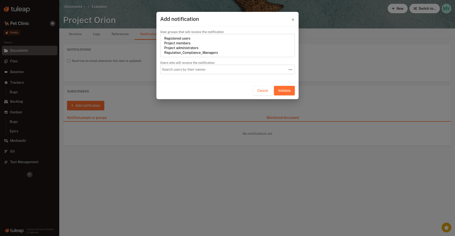 During the 17.1 release cycle, 41 requests were implemented. Bugs and security fixes have already been backported to Tuleap Enterprise builds. You will find below a detailed list of fixes. The most notable ones are in bold.