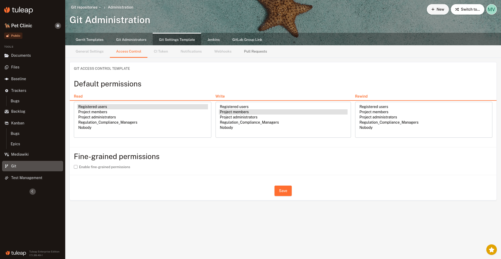 Git administration: default access control